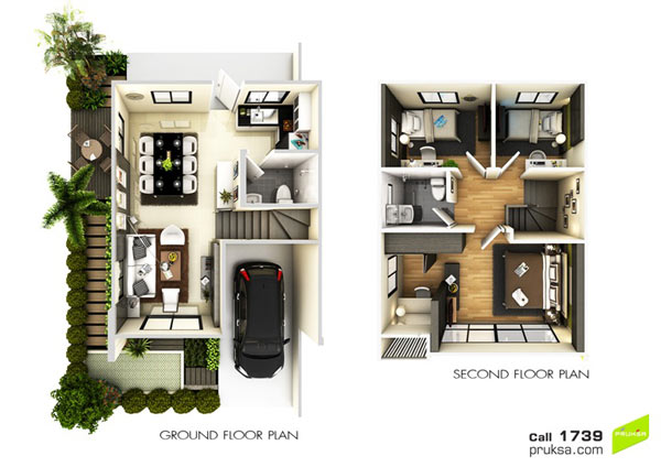 แบบบ้านในโครงการเป็นทาวน์โฮม 2 ชั้น มีแบบเดียวเท่านั้นตามรูปข้างล่างนี้