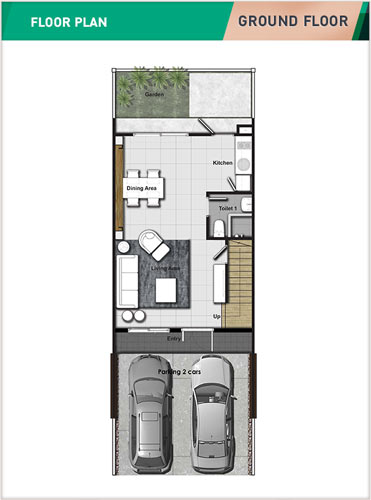 ทาวน์โฮม 3 ชั้น สไตล์โมเดิร์น - 3 ห้องนอน 4 ห้องน้ำ 1 ห้องรับแขก 1 ห้องเอนกประสงค์ ที่จอดรถ 2 คัน พื้นที่ใช้สอย 190 ตร.ม. หน้ากว้าง 5.5 เมตร