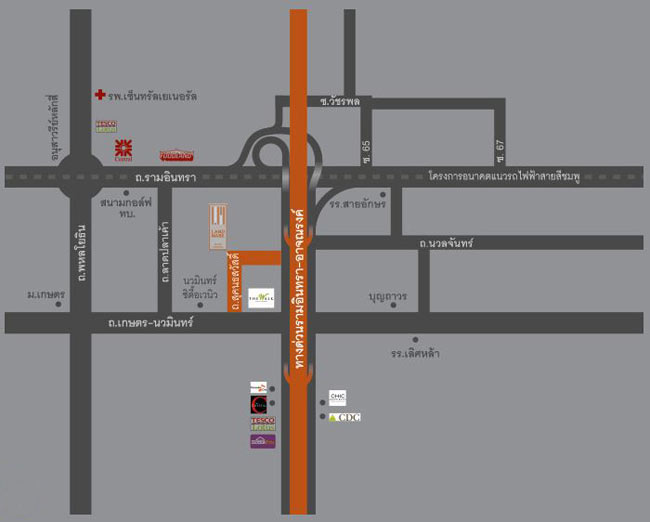 ย่านเอกมัย-รามอินทรา สามารถเข้าออกโครงการได้จากถนนประเสริฐมนูกิจ