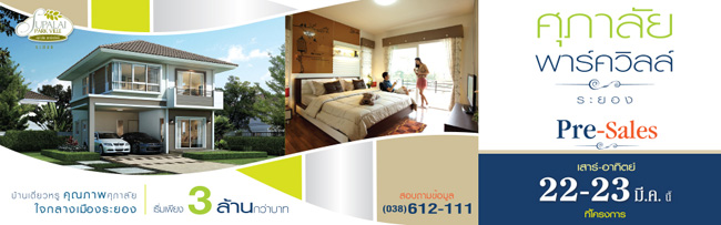 ศุภาลัย พาร์ควิลล์ ระยอง เริ่มเพียง 3 ล้านกว่าบาท เปิด Pre-Sales 23 - 23 มี.ค. 57 นี้ที่โครงการ