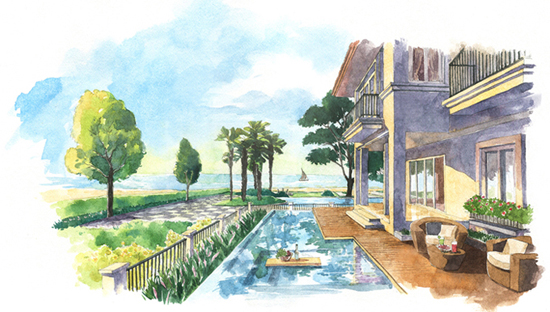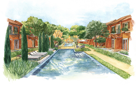 - พื้นที่พักผ่อน สระว่ายน้ำและสวนทอดยาวที่เชื่อมต่อบ้านในอารมณ์แบบ Pool Access เฉพาะ Firenze Zone