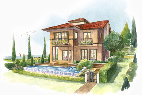 ภาพจำลองแบบบ้าน LUCCA 3. LIVORNO - บ้านเดี่ยว 2 ชั้น 3 ห้องนอน 4 ห้องน้ำ 1 ห้อง Maid+ห้องน้ำ ที่จอดรถ 2 คัน พื้นที่ใช้สอย 266 ตร.ม. บ้านเดี่ยวสไตส์ Beach Front Villa