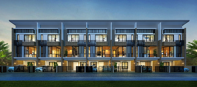 ภาพจำลองบรรยากาศและทาวน์โฮมในโครงการ จุดเด่นของโครงการโครงการ