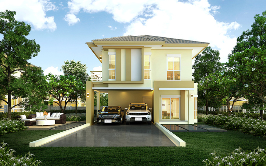 ภาพจำลองแบบบ้าน NEOLA (นี-โอ-ล่า) 3. NEVENA (นี-เว-น่า) - บ้านเดี่ยว พื้นที่ใช้สอย 175 ตร.ม. 3 ห้องนอน 3 ห้องน้ำ ส่วนรับแขกขนาดใหญ่ ซึ่งต่อเนื่องกับส่วนทานอาหาร และส่วนทำงาน 1 ห้องครัว และพื้นที่เตรียมอาหาร พร้อมที่จอดรถ 2 คัน