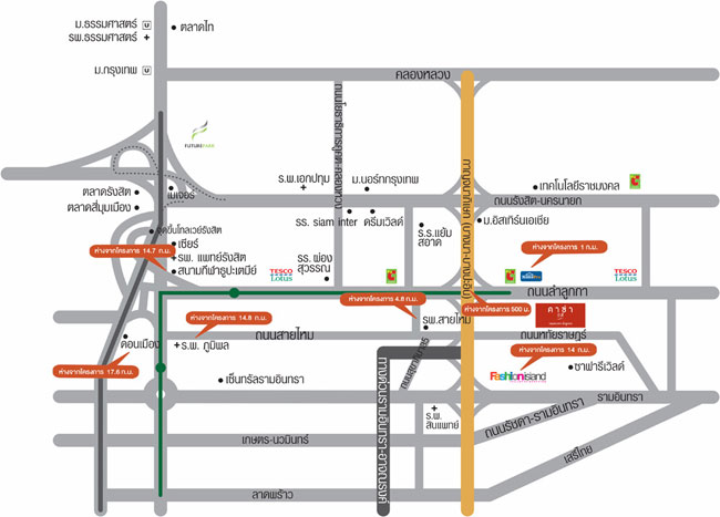 และโรงเรียนสารสาสน์วิเทศสายไหม จุดเด่นของโครงการ คาซ่า ซิตี้ วงแหวน - ลำลูกกา