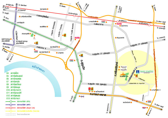 แผนที่โครงการ บ้านลุมพินี สวนหลวง ร.๙ โครงการตั้งอยู่ที่ ซอยเฉลิมพระเกียรติ ร.๙ ซอย 40/1 ถนนเฉลิมพระเกียรติ ร.๙ แขวงหนองบอน เขตประเวศ กรุงเทพมหานคร 10250 ซึ่งถนนเฉลิมพระเกียรติ ร.๙ นี้เชื่อมต่อโดยตรงกับถนนสุขุมวิท 103(อุดมสุข) เพื่อไปยังบีทีเอสอุดมสุขได้ สามารถเข้า-ออก ได้หลายเส้นทาง โครงการเชื่อมต่อกับถนนหลักหลายเส้น เช่น ถนนศรีนครินทร์, ถนนบางนา-ตราด และถนนสุขุมวิท 77(อ่อนนุช) ใกล้สถานที่สำคัญ และศูนย์การค้าต่างๆ เช่น พาราไดซ์พาร์ค, ซีคอนสแควร์, เซ็นทรัลบางนา, เมกะบางนา, บิ๊กซี, สวนหลวง ร.๙, โรงพยาบาลศิครินทร์, โรงพยาบาลไทยนครินทร์, โรงเรียนนานาชาติ บางกอกพัฒนา, โรงเรียนนานาชาติคอนคอร์เดียน ,โรงเรียนนานาชาติ ชาร์เตอร์, โรงเรียนอัสสัมชัญสำโรง และโรงเรียนเซนต์โยเซฟ