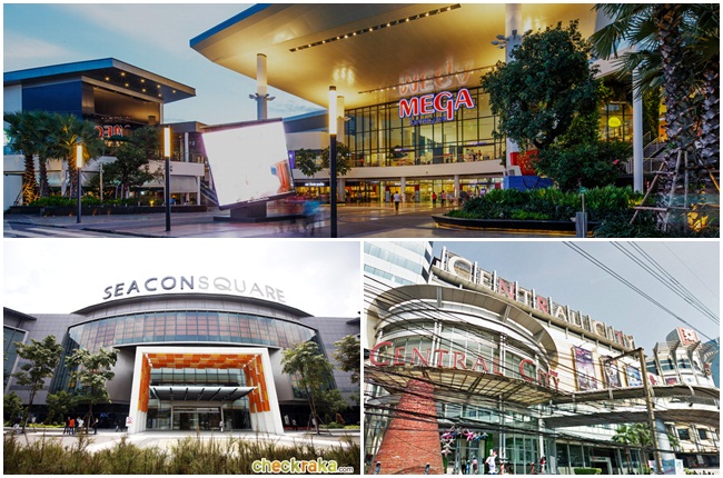 - ห้างสรรพสินค้า: ซีคอน สแควร์, เมกะ บางนา, เซ็นทรัล บางนา, บิ๊กซี บางนา, บิ๊กซี ปากน้ำ, โฮมโปร บางนา, และเทสโก้ โลตัส บางพลี
