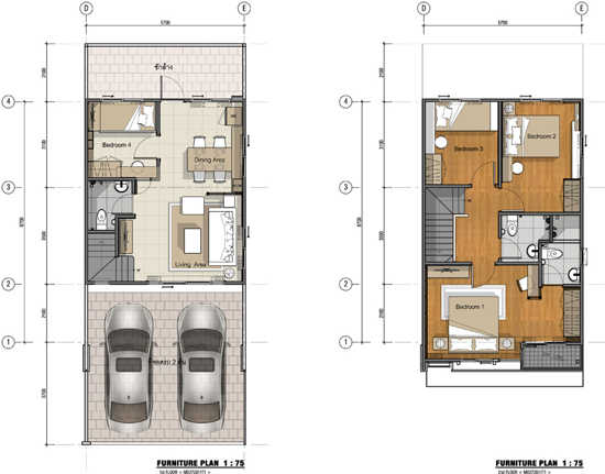 1. แบบบ้าน BONITA - ทาวน์โฮม 2 ชั้น 4 ห้องนอน 3 ห้องน้ำ ที่จอดรถ 2 คัน ขนาดที่ดิน 21.2 ตร.ว. พื้นที่ใช้สอย 131 ตร.ม.