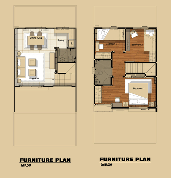 Floor Plan BONITA 2. แบบบ้าน Lilly - ทาวน์โฮม 2 ชั้น 3 ห้องนอน 2 ห้องน้ำ ที่จอดรถ 2 คัน ขนาดที่ดิน 18.5 ตร.ว. พื้นที่ใช้สอย 110 ตร.ม.