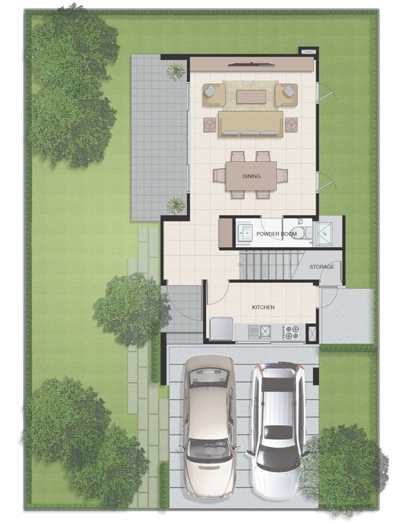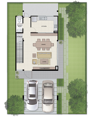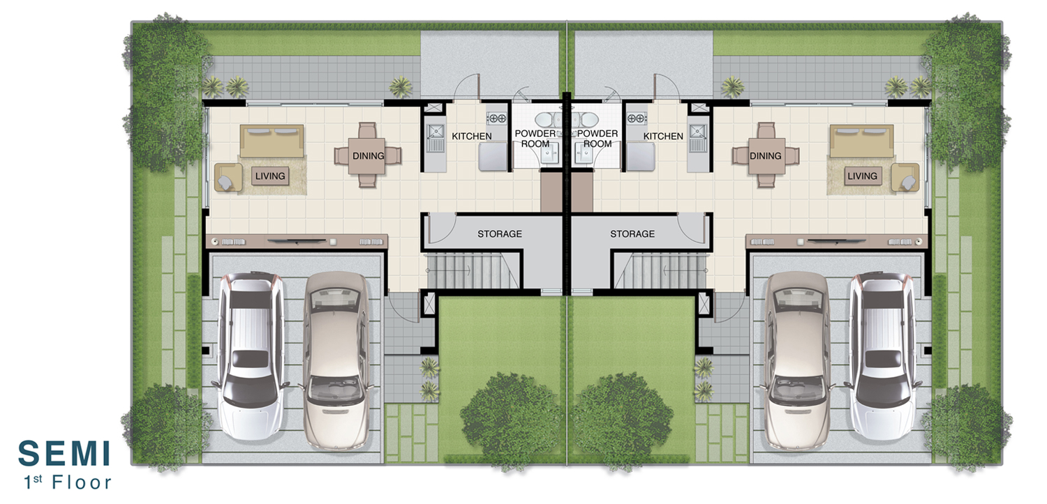 1. SEMI - บ้านแฝด 2 ชั้น ขนาด 3 ห้องนอน 3 ห้องน้ำ 1 ห้องนั่งเล่น 1 ห้องครัว ที่จอดรถ 2 คัน พื้นที่ใช้สอย 157 ตารางเมตร