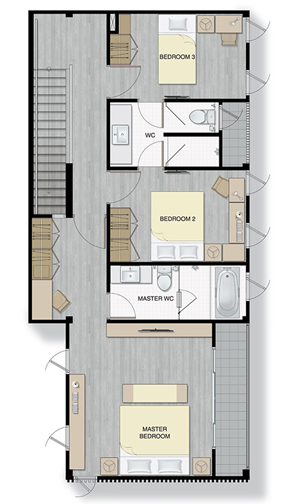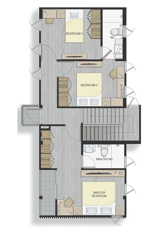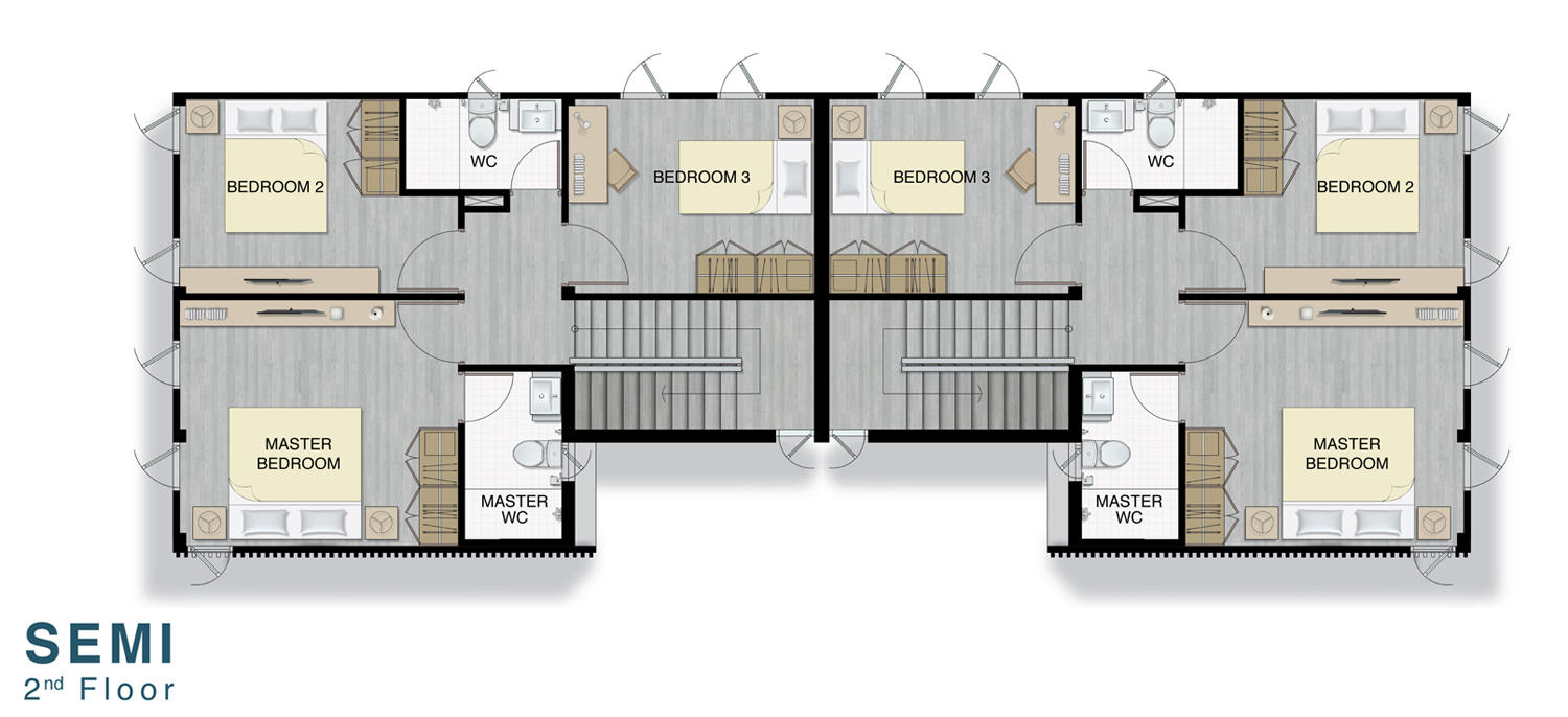 Floor Plan SEMI ชั้น 2 2. AETO - บ้านเดี่ยว 2 ชั้น ขนาด 3 ห้องนอน 3 ห้องน้ำ 1 ห้องนั่งเล่น 1 ห้องครัว ที่จอดรถ 2 คัน พื้นที่ใช้สอย 169 ตารางเมตร