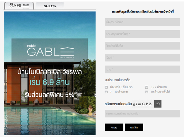 โนเบิล เกเบิล วัชรพล (Noble Gable Watcharapol) เริ่มต้น 6.9 ล้านบาท เปิดให้จองแล้ววันนี้ คลิกลงทะเบียนเพื่อ รับส่วนลดพิเศษ 5% ที่สำนักงานขาย ได้ตามลิงก์ด้านล่างนี้