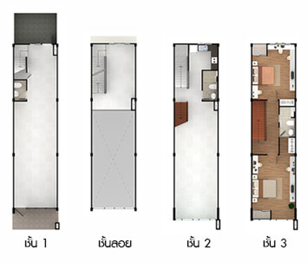 1. Business Home - บิสซิเนส โฮม 3 ชั้นครึ่ง หน้ากว้าง 4 เมตร พื้นที่ใช้สอย 243 ตร.ม. ชั้น 1 ชั้นลอย ชั้น 2 เป็น Office Space ชั้น 3 เป็นที่อยู่อาศัย 2 ห้องนอน 1 ห้องน้ำ