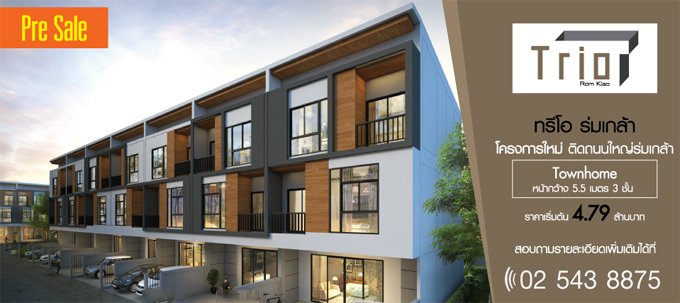 ทรีโอ ร่มเกล้า (Trio RomKlao) ... ทาวน์โฮม และโฮมออฟฟิศโครงการใหม่ติดถนนใหญ่ร่มเกล้า