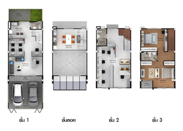 Floor Plan Business Home 2. Home Office - โฮมออฟฟิศ 3 ชั้นครึ่ง หน้ากว้าง 5.5 , 6 เมตร พื้นที่ใช้สอย 219 ตารางเมตร 3 ห้องนอน 2 ห้องน้ำ ที่จอดรถ 2 คัน