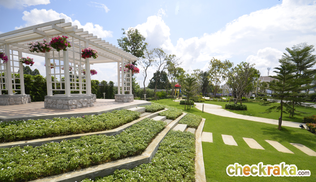 ภาพบรรยากาศสวนสไตล์อังกฤษภายในโครงการ จุดเด่นของโครงการคือ "บ้านสวนสไตล์อังกฤษ" ที่ที่ให้คุณได้ซึมซับกลิ่นอายเอกลักษณ์ ทัศนียภาพแบบอังกฤษแบบมีระดับ ทั้งในบ้านและบรรยากาศรอบโครงการให้มากกว่าด้วยที่ดินบ้านทุกหลังเริ่มตั้งแต่ 100 ตารางวาขึ้นไป ที่ให้คุณสามารถจัดสวนสวย หรือทำกิจกรรมกับครอบครัวได้อย่างเต็มที่ รายล้อมไปด้วยสาธารณูปโภคที่ครบครันภายในโครงการ คลับเฮ้าส์ขนาดใหญ่มีสไตล์หรูหราแนวอังกฤษ ฟิตเนส ติดสวนสวย, สระว่ายน้ำ, น้ำตก, สวนสาธารณะ และระบบรักษาความปลอดภัยตลอด 24 ชั่วโมง