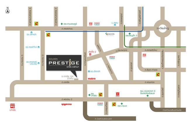 โครงการอยู่ไม่ไกลจาก สำเพ็ง 2, แมคโคร และโรงเรียนเลิศหล้า จุดเด่นโครงการโกลเด้น เพรสทีจ เอกชัย - วงแหวน