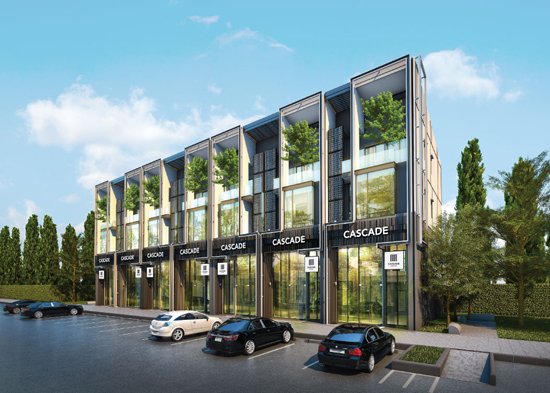 คาสเคด บางนา (Cascade Bangna)" อาคารพาณิชย์ 4 ชั้น ระบบการออกแบบ Facade ตกแต่งด้านหน้าอาคารอย่างสร้างสรรค์ และชาญฉลาด ส่งผลให้ได้ Facade ที่สวยมีเอกลักษณ์เฉพาะตัวในทุกยูนิต ดูโดดเด่น ทันสมัย แตกต่างไปจากอาคารพาณิชย์เดิมๆ ทั่วไป มีเนื้อที่บ้านตั้งแต่ 20.8-33.1 ตร.ว. พื้นที่ใช้สอย 250 ตร.ม. จำนวนทั้งหมด 63 ยูนิต บนพื้นที่โครงการ 10 ไร่ 1 งาน 35.5 ตารางวา พร้อมถนนโครงการขนาดใหญ่ กว้างสุดรวม 16 เมตร ที่จอดรถส่วนกลางมากกว่า 300 คัน เพิ่มพื้นที่สีเขียวให้ได้ผ่อนคลายกับธรรมชาติของสวนพักผ่อน ครบครันเรื่องการรักษาความปลอดภัย ทั้งกล้องวงจรปิด CCTV และเจ้าหน้าที่รักษาความปลอดภัยตลอด 24 ชั่วโมง