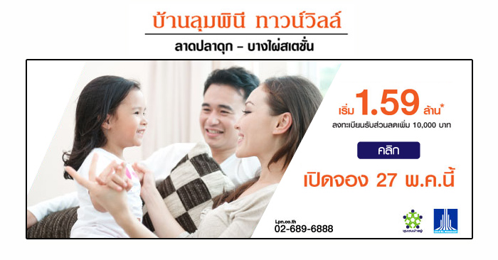 บ้านลุมพินี ทาวน์วิลล์ ลาดปลาดุก-บางไผ่สเตชั่น เริ่มต้น 1.59 ล้านบาท เปิดให้จองแล้ววันนี้ คลิกลงทะเบียนเพื่อรับสิทธิพิเศษได้ตามลิงก์ด้านล่างนี้
