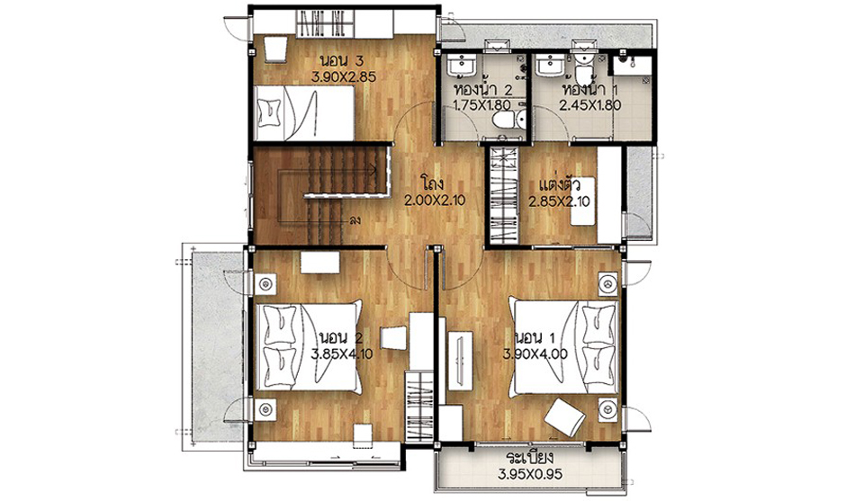 5. แบบบ้านศุภฤทธิ์ - บ้านเดี่ยว 2 ชั้น พื้นที่ใช้สอย 175 ตร.ม. สร้างบนที่ดินตั้งแต่ 50 ตร.ว. ขึ้นไป ขนาด 4 ห้องนอน 3 ห้องน้ำ 1 ส่วนพักผ่อน ที่จอดรถ 2 คัน
