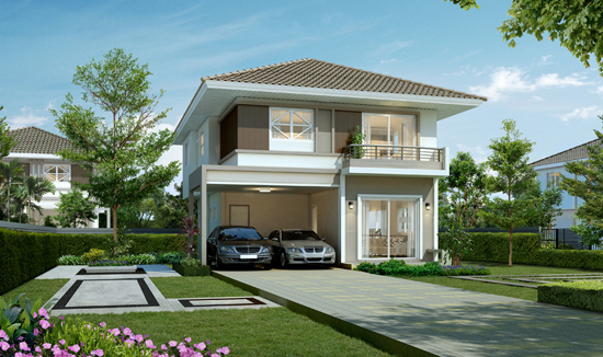 4. แบบบ้านศุภดำรง - บ้านเดี่ยว 2 ชั้น พื้นที่ใช้สอย 167 ตร.ม. สร้างบนที่ดินตั้งแต่ 50 ตร.ว. ขึ้นไป ขนาด 3 ห้องนอน 3 ห้องน้ำ 1 ห้องอเนกประสงค์ 1 ส่วนพักผ่อน และที่จอดรถ 2 คัน