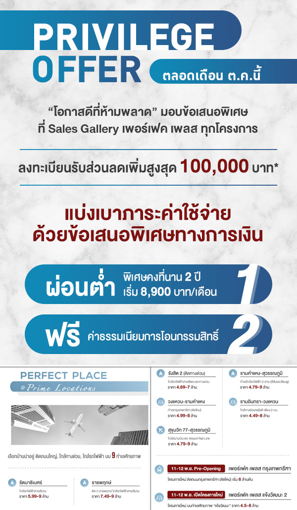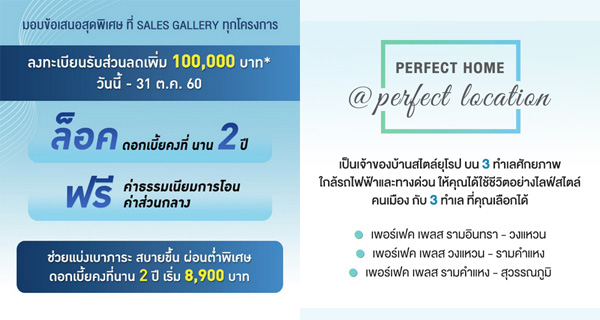 พบกับโปรโมชั่นโครงการบ้าน และทาวน์โฮมประจำสัปดาห์นี้ (16 - 22 ตุลาคม 2560) กันอีกครั้งนะคะ สำหรับสัปดาห์นี้มีโปรโมชั่นบ้าน และทาวน์โฮมใหม่ๆ เพิ่มมาอีกเพียบเลยค่ะ ส่วนโปรโมชั่นเดิมก็ยังคงน่าสนใจ แต่ต้องรีบหน่อยนะคะ บางโปรโมชั่นก็ใกล้จะหมดเขตแล้ว ส่วนของสัปดาห์นี้จะมีอะไรน่าสนใจบ้างนั้น ตามไปดูกันเลยค่าพฤกษา เรียลเอสเตทสอบถามรายละเอียดเพิ่มเติมได้ที่ โทร.1739 เว็บไซต์ www.pruksa.comศุภาลัยสอบถามรายละเอียดเพิ่มเติมได้ที่ 1720 เว็บไซต์ http://www.supalai.com/Golden Landสอบถามรายละเอียดเพิ่มเติมได้ที่ 02-764-6200 เว็บไซต์ http://www.goldenland.co.thQ Houseสอบถามรายละเอียดเพิ่มเติมได้ที่ 1388 เว็บไซต์ https://www.qh.co.th/ปริญสิริสอบถามรายละเอียดเพิ่มเติมได้ที่ 1753 เว็บไซต์ http://www.prinsiri.comพร็อพเพอร์ตี้เพอร์เฟคสอบถามรายละเอียดเพิ่มเติมได้ที่ โทร. 1375 เว็บไซต์ www.pf.co.thลลิลพร็อพเพอร์ตี้สอบถามรายละเอียดเพิ่มเติมได้ที่ โทร.1778 เว็บไซต์ www.lalinproperty.comนารายณ์พร็อพเพอร์ตี้