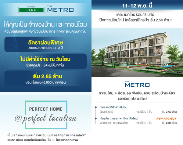 สอบถามรายละเอียดเพิ่มเติมได้ที่ 02-028-9999 เว็บไซต์ http://www.naraiproperty.com/ชาญอิสสระ ดีเวล็อปเมนท์สอบถามรายละเอียดเพิ่มเติมที่ 02-308-222 เว็บไซต์ charnissara.com/index.phpมหาทรัพย์ ดีเวลลอปเม้นท์สอบถามรายละเอียดเพิ่มเติมได้ที่ 066-2274-4477 เว็บไซต์ http://www.mahasrup.com/ภัทรเฮ้าส์ แอนด์ พร็อพเพอร์ตี้สอบถามรายละเอียดเพิ่มเติมได้ที่ 0-2976-1248 เว็บไซต์ http://www.pthouse.co.th/แท็กที่เกี่ยวข้อง :
