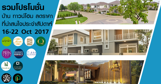 รวมโปรโมชั่นบ้าน ทาวน์โฮม ลดราคาที่น่าสนใจประจำสัปดาห์ 16-22 ตุลาคม 2560