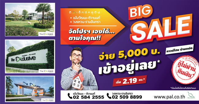 พีซแอนด์ลีฟวิ่ง จัดโปรฯ "Big sale จัดโปรฯ เองได้ ตามใจคุณ" กับทาวน์โฮมแบรนด์ "ดิเอ็กซ์คลูซีฟ" สองโครงการ บนสองทำเลศักยภาพ