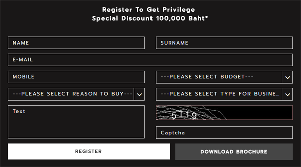 Exclusive Launch เริ่ม 7.99 ล้านบาท* ท่านที่สนใจสามารถลงทะเบียนรับส่วนลด 100,000 บาท* ได้ที่ลิงก์ด้านล่างนี้