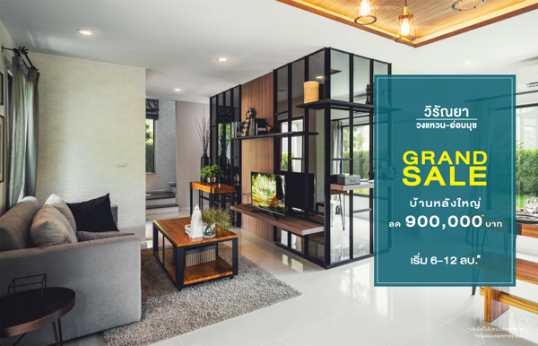วิรัณยา วงแหวน - อ่อนนุช" ฟรีส่วนกลาง 2 ปี พร้อมลดสูงสุด 900,000 บาท* กับโปรโมชั่น GRAND SALE ลดส่งท้ายปี บ้านเดี่ยวหลังใหญ่บนทำเลศักยภาพ 3 ห้องนอน เริ่ม 6 -12 ล้านบาท*