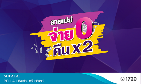 ศุภาลัย เบลล่า กิ่งแก้ว - ศรีนครินทร์" ค่าใช้จ่าย 0 บาททุกรายการ พร้อมรับเงินคืน 2 เท่า!!* ค่าใช้จ่าย 0 บาททุกรายการ ค่าสัญญา / ค่าโอนฯ / ค่าจดจำนอง / ค่าส่วนกลาง 1 ปีแรก / ค่ามิเตอร์น้ำ - ไฟ พร้อมรับเงินคืน 2 เท่า!!* ตั้งแต่วันนี้ - 15 ธันวาคม 2560 เท่านั้น
