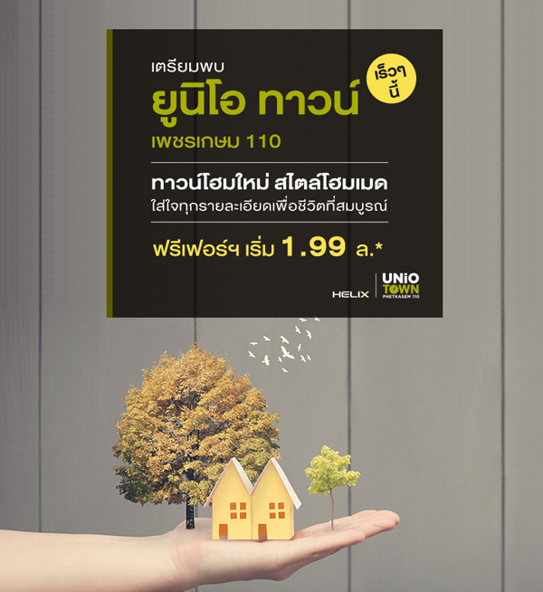 โปรโมชั่น: ยูนิโอ ทาวน์ เพชรเกษม 110 โครงการใหม่ ทาวน์โฮมสไตล์โฮมเมด ฟรี! เฟอร์นิเจอร์ เริ่ม 1.99 ล้านบาท