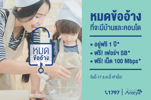 www.areeya.co.th โปรโมชั่น: ทุกค่าใช้จ่ายเป็น 0* / อยู่ฟรี 1 ปี / ฟรี ค่าไฟ / ฟรี ค่าน้ำ / ฟรี ค่าโอน แบรนด์ที่เข้าร่วม Centro, The City, Mind