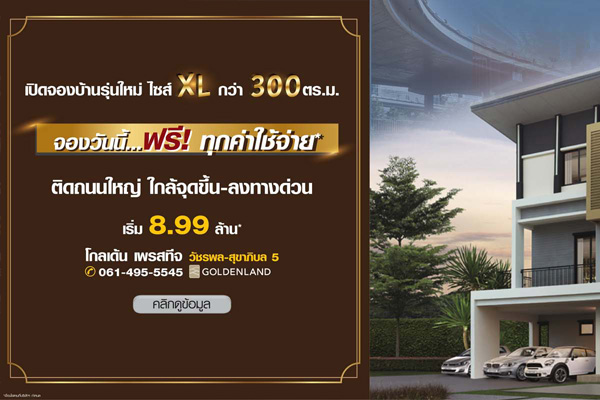 โกลเด้น เพรสทีจ วัชรพล - สุขาภิบาล 5" จองวันนี้ ฟรี! ทุกค่าใช้จ่าย เริ่ม 8.99 ล้านบาท