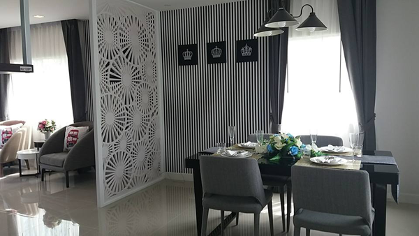 2. แบบบ้าน Crisp - พื้นที่ใช้สอย 141 ตารางเมตร 3 ห้องนอน 2 ห้องน้ำ 1 ห้องรับแขก 1 ห้องรับประทานอาหาร ครัวแยกสัดส่วน เคาน์เตอร์เตรียมอาหาร จอดรถ 1 คัน
