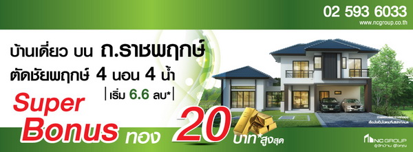บ้านฟ้ากรีนเนอรี่ปากเกร็ด-ราชพฤกษ์ ฟังก์ชั่นครบ 4 นอน 4 น้ำ เริ่มเพียง 6.6 ล้านบาท* เดือนแห่งโบนัส! กับ NC Super Bonus ให้ทองสูงสุด 20 บาท* **ลงทะเบียนและจองรับเพิ่มของแถมทุกรายการ**