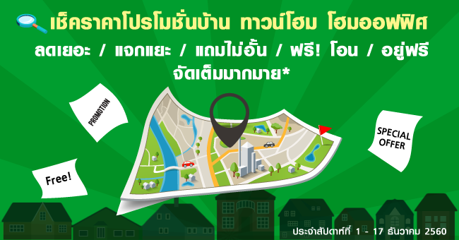 เช็คราคาโปรโมชั่นบ้าน ทาวน์โฮม ลดราคาที่น่าสนใจประจำสัปดาห์ที่ 1 - 17 ธันวาคม 2560