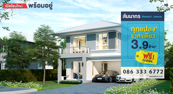 สัมมากร ชัยพฤกษ์-วงแหวน ทุกแปลง* ราคาเดียว 3.9 ล้านบาท ฟรี! ทุกค่าใช้จ่าย