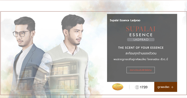 บริษัท ศุภาลัย จำกัด (มหาชน) เปิดประสบการณ์ของที่อยู่อาศัยแนวใหม่ ใจกลางเมือง "ศุภาลัย เอสเซ้นส์ ลาดพร้าว (Supalai Essence Ladprao)" ผู้ที่สนใจเข้าลงทะเบียนรับสิทธิพิเศษก่อนใครได้ที่ลิงก์ด้านล่างนี้ และติดตามรับข่าวสารโครงการได้ก่อนใครที่เช็คราคาดอทคอม เร็วๆ นี้สอบถามข้อมูลเพิ่มเติมได้ที่ โทร. 1720 และ www.supalai.comแท็กที่เกี่ยวข้อง :