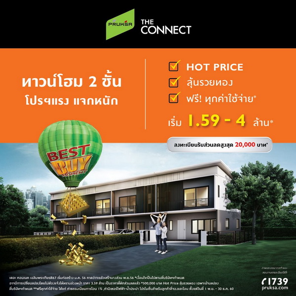 โปรโมชั่น: ทาวน์โฮม The Connect เฉลิมพระเกียรติ 67 โปรฯแรง จัดหนัก Hot Price / ลุ้นรวยทอง / ฟรี! ทุกค่าใช้จ่าย* เริ่ม 1.59 - 4 ล้านบาท