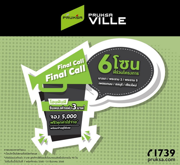 โปรโมชั่น: Final Call! จอง 5,000 ฟรีทุกค่าใช้จ่าย* พร้อมเข้าอยู่ได้เลย โอนทันที รับทองคำแท่งสูงสุด 3 บาท* 6 โซนที่ร่วมโครงการ บางนา / พระราม 2 / พระราม 5 / เพชรเกษม / ชลบุรี / เชียงใหม่