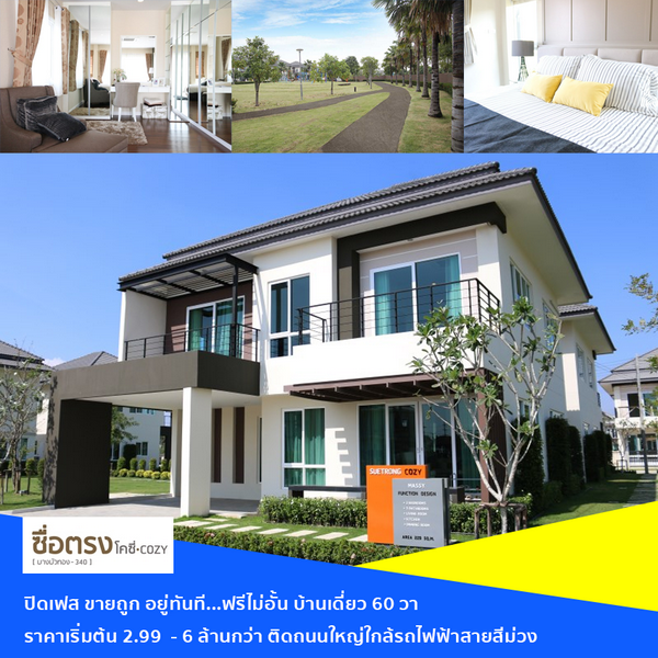 ซื่อตรง โคซี่ บางบัวทอง 340 จองบ้านพร้อมอยู่วันนี้ รับส่วนลดสูงสุดกว่า 300,000 บาท พร้อมฟรีค่าธรรมเนียมโอน เป็นต้น* **พิเศษเพียง 5 หลังสุดท้าย** บ้านเดี่ยวราคาสบายกระเป๋า กับบ้านแบบ Mono 60 วา 3 นอน One Price ราคา NET 2.99 ล้านบาท (จากราคา 3.2 ล้าน) * จองภายใน 30 ธ.ค. 60