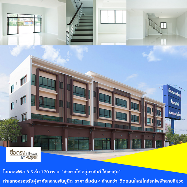ซื่อตรง โคซี่ AT WORK บางบัวทอง 340 พิเศษโฮมออฟฟิตพร้อมอยู่วันนี้ รับส่วนลดกว่า 300,000 บาท* จองภายใน 30 ธ.ค. 60