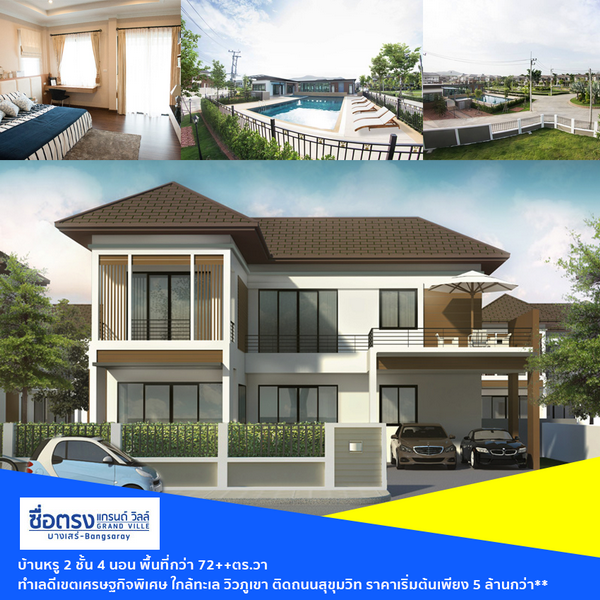 ซือตรง แกรนด์วิลล์ บางเสร่ - สัตหีบ พิเศษ จองบ้าน พร้อมอยู่วันนี้ รับส่วนลดพิเศษกว่า 300,000 บาท พร้อมของแถมมูลค่ารวมอีกกว่า 200,000 บาท จองภายใน 30 ธ.ค. 60