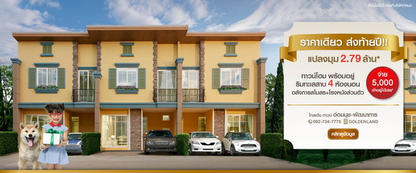www.scasset.com โปรโมชั่น : โกลเด้น ทาวน์ พระราม 2 โปรฯ แรง ส่งท้ายปี!!! จองวันนี้ อยู่ฟรี 1 ปี ไปเลย!! ทาวน์โฮมพร้อมอยู่ ย่านพระราม 2 ติดถนนใหญ่ ใกล้เซ็นทรัล มาพร้อมฟังก์ชัน 4 ห้องนอน 2 ที่จอดรถ พร้อมสโมสร พิเศษยิ่งกว่ากับ ครัวไทย ห้องพระและโรงหนังส่วนตัว ในราคาสุดคุ้ม เพียง 1.69 ล้าน* สิทธิพิเศษ! จำนวนจำกัด*
