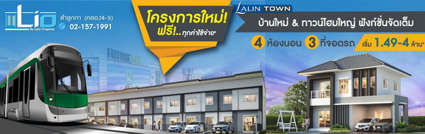 ลลิล ทาวน์ ไลโอ ลำลูกกา คลอง 4-5" โครงการใหม่!! ใจกลาง ลำลูกกา ตั้งอยู่บนทำเลแห่งอนาคต 4 นาที ถึงรถไฟฟ้าสายสีเขียว พร้อมด้วยสวนส่วนกลางขนาดใหญ่ คลับเฮาส์หรู และสระว่ายน้ำสุดโมเดิร์น - บ้านใหม่หน้าสวนติดถนนเมน เริ่ม 2.8-4 ล้าน* - ทาวน์โฮมระดับพรีเมี่ยม 2 จอดรถส่วนตัว เริ่ม 1.49 - 2 ล้านบาท ลงทะเบียนวันนี้รับสิทธิ์พิเศษ ฟรี!! ทุกค่าใช้จ่ายวันโอน+แอร์*