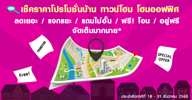 เช็คราคาโปรโมชั่นบ้าน ทาวน์โฮม ลดราคาที่น่าสนใจประจำสัปดาห์ที่ 18 - 31 ธันวาคม 2560