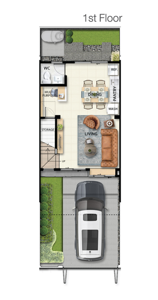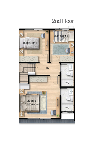 1. แบบบ้าน Gemini - ทาวน์โฮม 2 ชั้น พื้นที่ใช้สอย 89 ตร.ม ขนาดที่ดิน 18 ตร.วา ห้องนอน 2 ห้อง ห้องน้ำ 3 ห้อง ที่จอดรถ 1 คัน