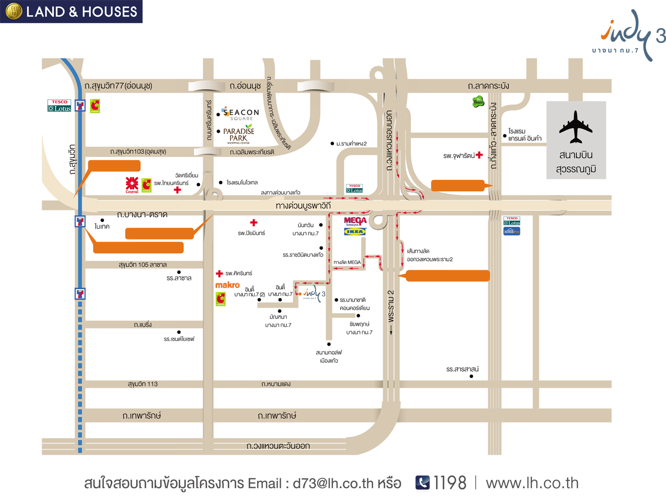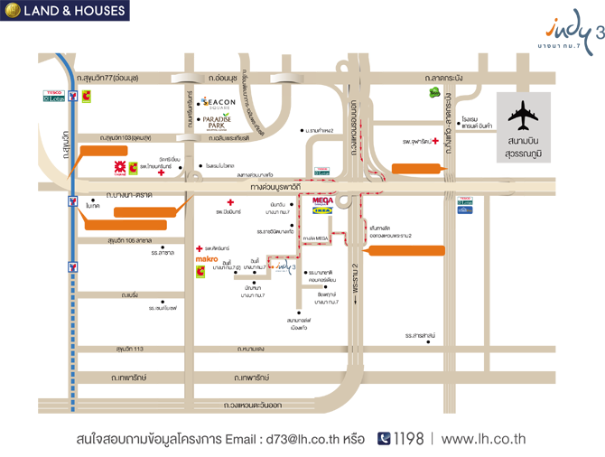 ทาวน์โฮมโครงการใหม่ อินดี้ 3 บางนา กม.7 (Indy 3 Bangna KM.7) ชีวิตสไตล์อังกฤษ ในสังคมมีระดับ ติดต่อสำนักงานขาย ทุกวัน เวลาทำการ 09.00 - 17.30 น. โทร. 1198 EMAIL : d73@lh.co.th